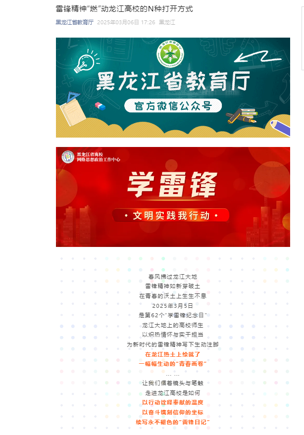 【黑龙江省教育厅】雷锋精神“燃”动龙江高校的N种打开方式