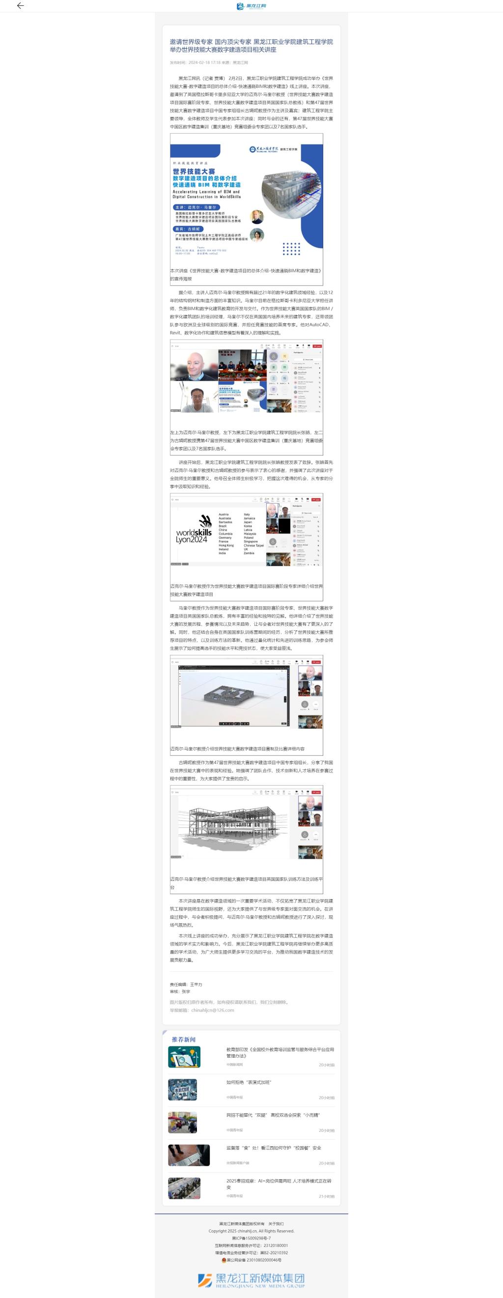 【黑龙江网】邀请世界级专家 国内顶尖专家 beat365中国官网建筑工程学院举办世界技能大赛数字建造项目相关讲座