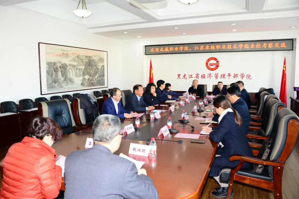 11月4上午,武威职业学院党委书记、院长赵明一行14人及江苏农林职业技术学院副书记简祖平一行4人来beat365进行学习交流,教务处、质量监控中心、招生就业处、思政教研部及相关二级学院参加了会议,党委书记赵继会、纪委书记周莲香及副校长王明海同志出席了会议。