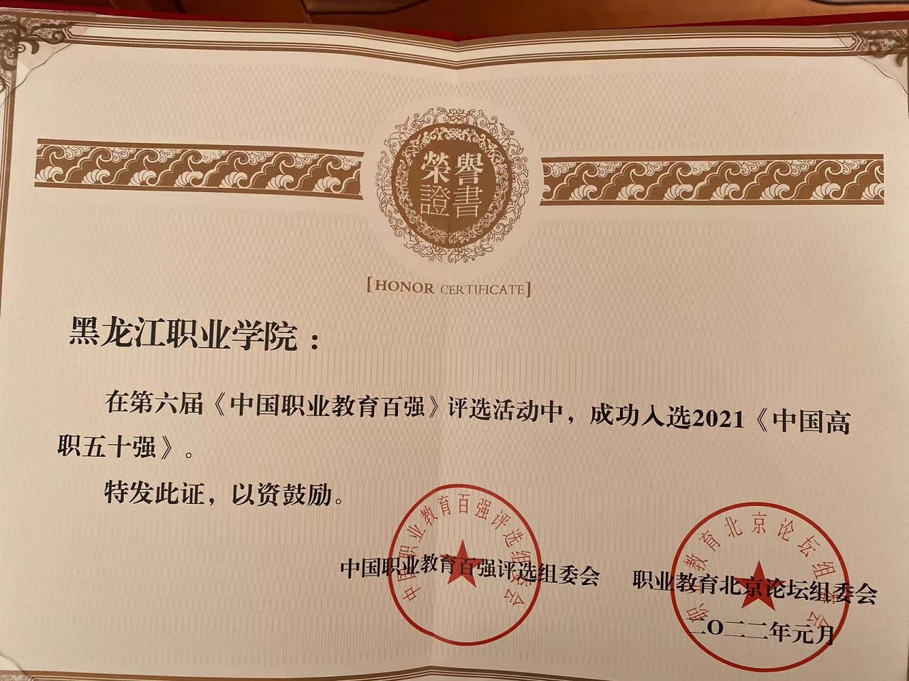 1月9日,第六届中国职业教育百强发布会暨第六届职业教育论坛在北京大学召开。会上,公布了2021年第六届中国职业教育百强入选名单(包含2021中国高职50强、2021中国中职50强)。beat365成功入选2021中国职业教育百强、中国高职50强,是黑龙江省唯一入选的高职院校。校长王利文代表学校出席发布会及颁奖仪式。