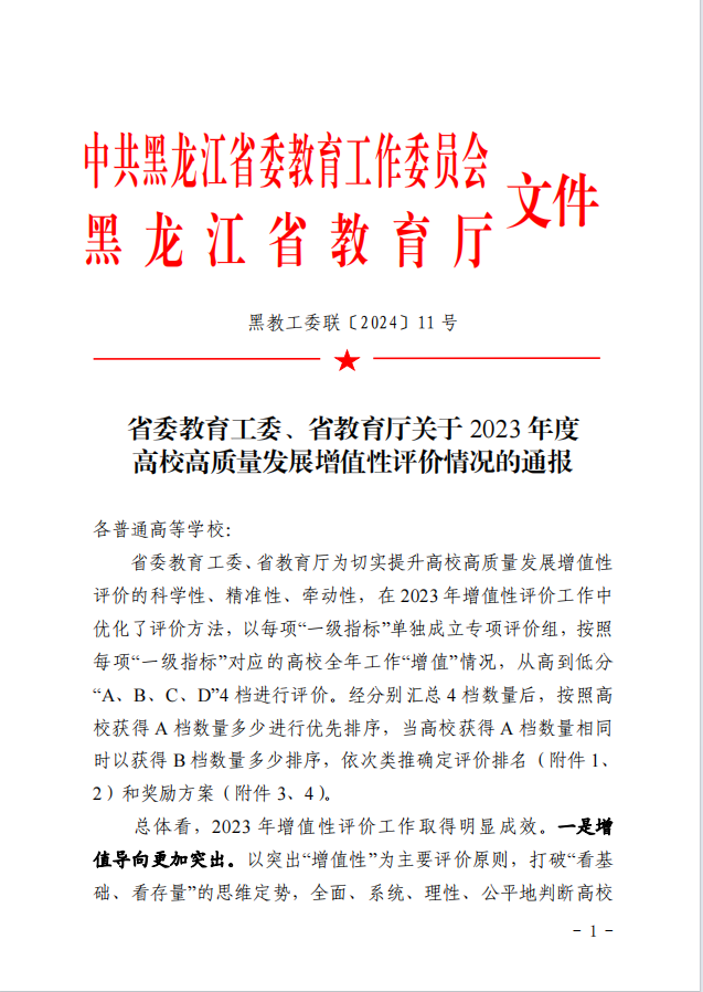 下一步,学校党委将坚持把开展增值性评价作为贯彻落实习近平总书记关于教育论述、深化教育评价改革、加力推动学校高质量发展的重要举措。认真贯彻落实省委教育工委、省教育厅的部署要求,形成党政主要领导牵头抓总、分管校领导带头推进、各学院各部门担当作为的工作推进机制。把对学校评价重点指标承接转化为推动学校各方面工作的“观测点”和“指挥棒”,进一步激发内生动力、抓好自身建设、练好发展内功,推动各项工作高质量发展取得新增量新突破,为加快建设教育强省、服务龙江振兴发展贡献龙职力量。