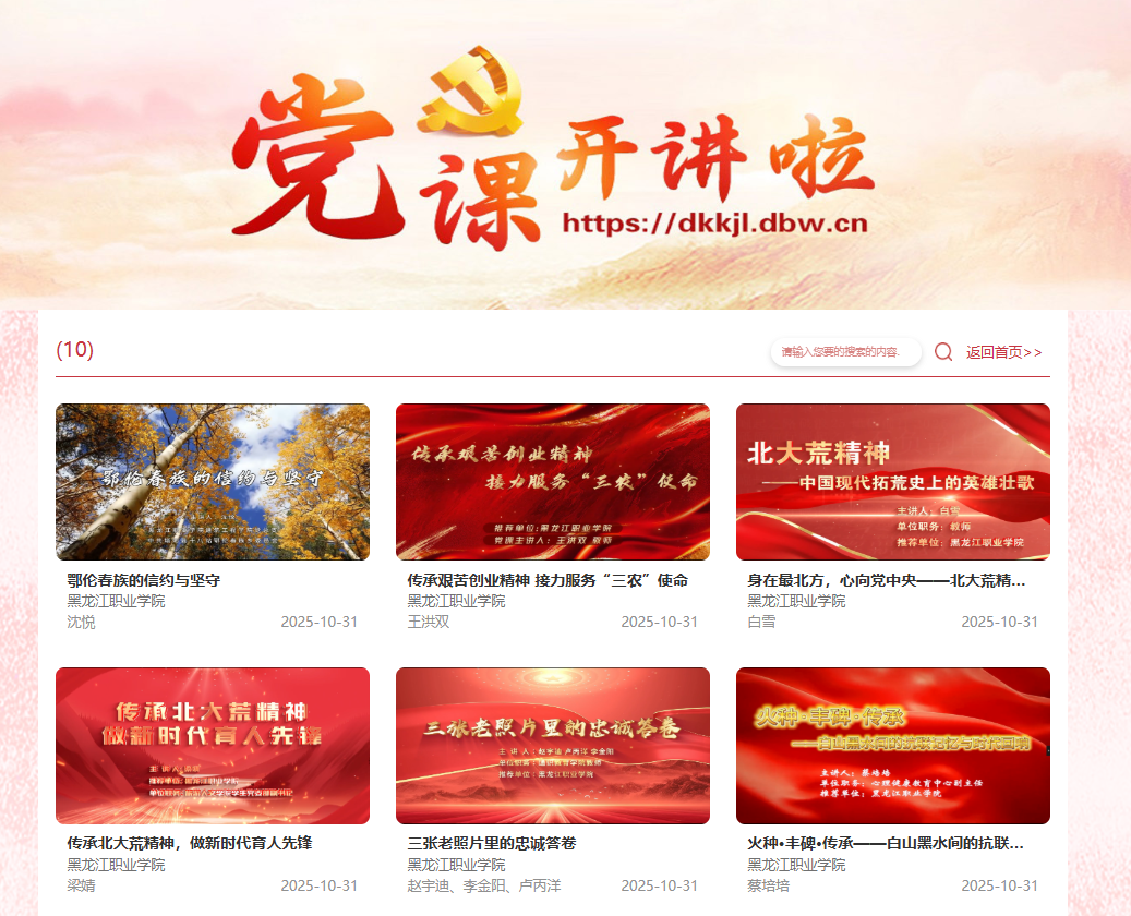 近日,在黑龙江省委组织部“党课开讲啦”活动中,beat365报送的6堂党课经省委教育工委推荐、省党员教育中心审核,被平台采用并集中展播。