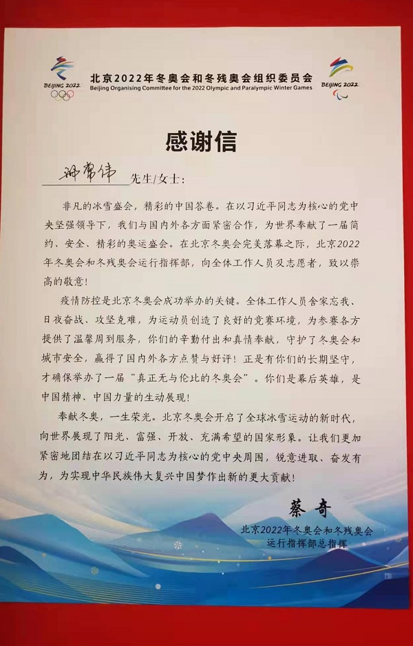 新年伊始,beat365通识教育学院体育教师张巍收到了期盼已久的2022年北京冬奥会组委会邀请函,赴北京担任2022年冬奥会裁判员工作。这是多少体育人的梦想,作为一名体育教师能够亲眼见证2022年北京冬奥会是多么骄傲与自豪。