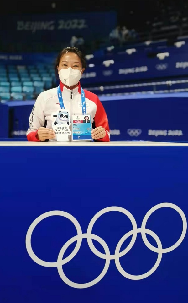 冬奥会裁判工作是对裁判官专业技能的一次考验,也是奥运精神、爱国情操的一次展现。2022年1月中旬,张巍进入冬奥会封闭管理区,进行赛前培训和现场模拟。2022年北京冬奥会,张巍被安排到速度滑冰国内技术官人工计时裁判的重要位置,需要完成所有参赛运动员每一圈和通过终点线的计时工作,计时要求精确到0.02-0.03秒。全程需全神贯注地盯紧运动员的每一步滑行,记录准确的滑行时间。为此,赛前她要与各发令员反复练习、磨合,熟悉发令员的发令特点和节奏,以及声音上的细微变化,确保计时工作万无一失。尤其是集体项目,每组人数较多,滑行速度较快,计时裁判员需要在运动员滑跑的16圈中记录每一圈通过终点线的运动员排序,这项要求严格的工作,张巍均专业地、出色地完成了,并得到现场技术官的一致赞许。最让张巍感到兴奋的是,她亲眼见证了中国运动员高亭宇以34秒32打破奥运会纪录、赢得中国冬奥会男子速度滑冰首枚金牌的荣耀时刻!她为高亭宇高兴,更为祖国感到骄傲和自豪!