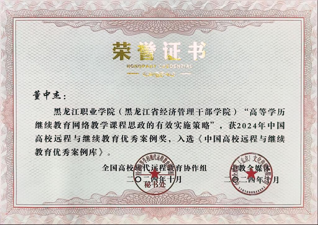 学院自建网络教学平台“龙知网”课程数量、课程质量、用户数量、服务范围均列省内同类型院校之首,《审计实务》等四门课程先后入选黑龙江省高等学校课程思政示范课程和教学团队。2024(第十届)中国远程与继续教育大会,beat365成人学历教育斩获三项殊荣,校本部教学点荣获2024年度高校继续教育优秀教学点,申报的两项案例双双入选“中国高校远程与继续教育优秀案例库”。
