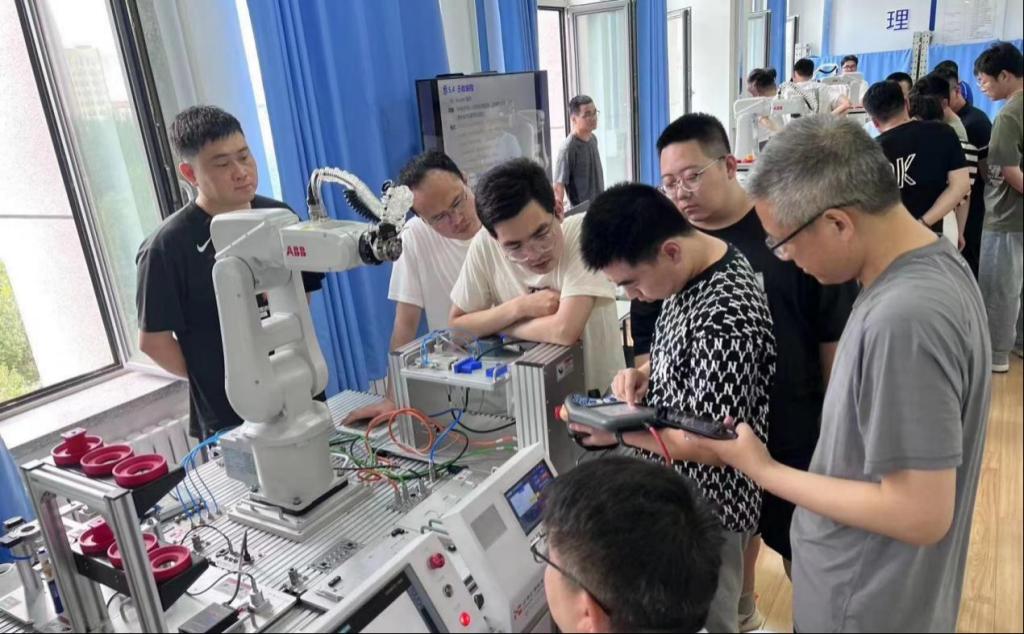 ▲学员在亲自动手实践操作机器人