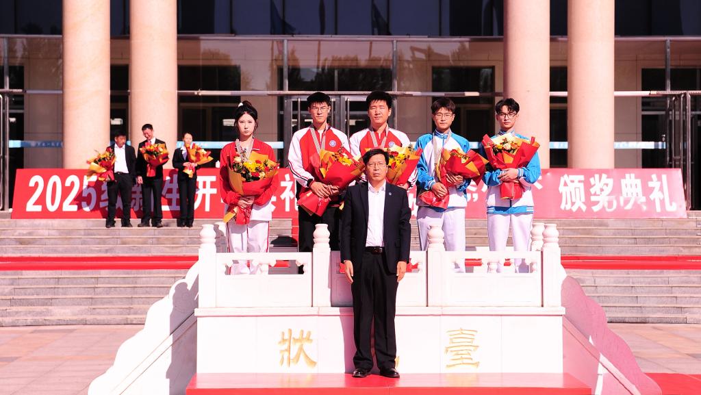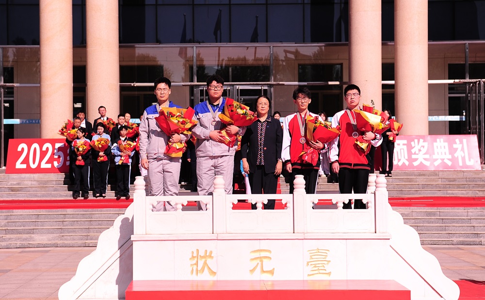 这是一场对卓越的礼赞,也是一次对青春的致敬。9月29日,beat3652025学年度“颁龙职奖·登状元台”活动隆重举行。获奖者依次走上红毯,登上状元台。校长王利文,党委副书记杨东辉,副校长吴艳秋、何志鹏,纪委书记陈玉平,副校长王广文,党委委员、组织部部长石明杰分别为国赛金奖、银奖、铜奖获奖代表颁奖,并合影留念。