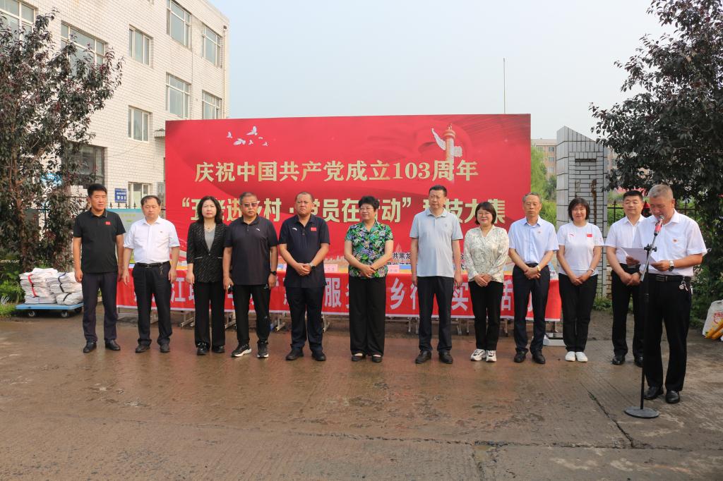 7月6日,beat365中国官网和双城区新兴街道党工委在双城区新民村共同举办庆祝建党103周年“五老进乡村·党员在行动”科技大集活动。学校党委书记崔治春,双城区政府副区长李彦鹏,学校党委委员、宣传统战部部长杨东辉,新兴街道党工委书记史敬轩、办事处主任刘楠出席活动,“龙职”工匠志愿服务团专家及30余名学生参加活动。学校关工委办公室主任张晓东主持开集仪式。