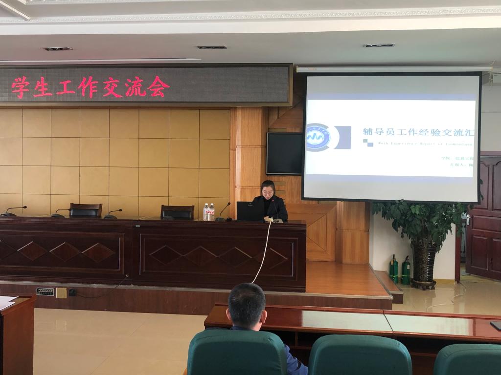 两校区共11名辅导员进行了精彩的工作交流和经验分享。机械工程学院尚天任讲述了对争做“四有好老师”的理解,通过案例分享做好班级管理和加强自身建设方面的心得体会。电气工程学院刘东航分享了开展“赏识教育”心得体会,用“充满人情味、富有生命力”的教育让学生发现并发扬优点和长处。建筑工程学院张苏阐述了了解学生、熟悉学生、服务学生的工作理念,并举例分享了自己在实际工作中的成功做法。工商管理学院李岱泓再现了做好“大姐姐”、扮好“大管家”、演好“领头雁”、当好“工匠人”的一幕幕感人画面。会计金融学院王双琪分享了因材施教、无障碍沟通、狠抓学风建设的成功做法。旅游与人文艺术学院李京结合“对待学生要严爱慈心、对待工作要找准重心、对待问题要多多留心”的“三心”角度分享自己的做法和体会。农牧工程学院宓宪伟分享了通过强化班级教育管理,带领学生在“创新创业”工作上取得的成绩心得体会。食品药品学院蒋雨晴分享了参加全省骨干辅导员培训的心得体会。公寓辅导员卢丙洋和史召楠分别从“高校辅导员素质能力大赛”和“学生公寓的管理服务”这两个角度分享了参赛体会、取得的成绩和身边发生的故事。