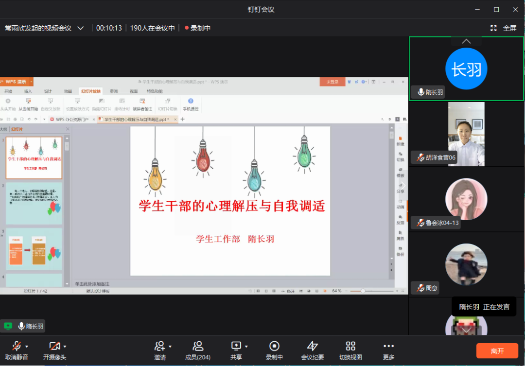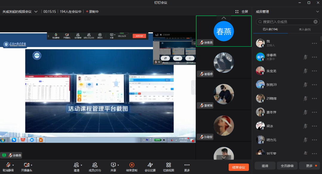 6月12日,培训班结业式在钉钉线上平台举行。校团委学生副书记常雨欣宣读了《关于准予第十六期“青年马克思主义者培养工程”暨大学生骨干培训班188名学员结业的决定》,校团委学生副书记樊泽宇宣读了《关于表彰第十六期“青年马克思主义者培养工程”暨大学生骨干培训班38名“优秀学员”的决定》。“五四青年标兵”代表张新雨、“优秀共青团干部”代表马金阳、“第十五期‘青马班’优秀学员”代表郎佳伟进行了经验分享,为新一届青马班学员分享宝贵经验。最后,校团委书记邹春雷进行了总结讲话,对培训班成功举办并圆满结束表示祝贺,并充分肯定了学员们的优秀表现和取得的成绩,就如何全方面提升学生骨干的综合素质、理论水平、专业素养和工作能力提出了具体要求。