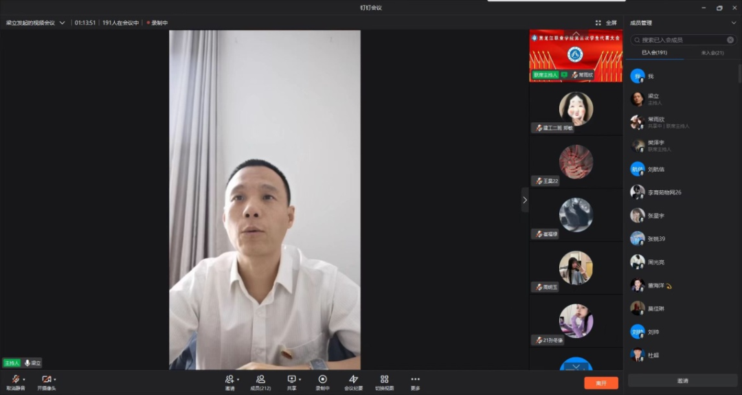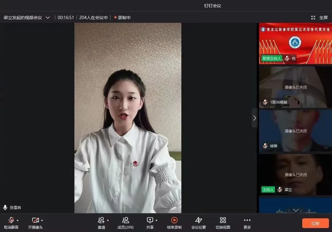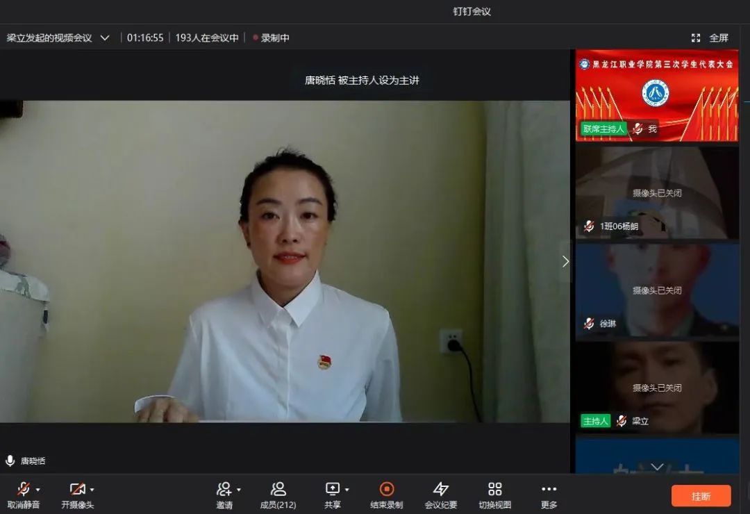 6月13日上午,beat365第三次学生代表大会正式会议在钉钉线上平台隆重召开。学校党委副书记、工会主席周家郁,学工部部长赵彦生,学工部党总支书记石倩,校团委书记邹春雷,哈尔滨市学联驻会主席井鸿堃及校团委全体老师和各分院团总支书记参加会议,会议由2019级校团委兼职学生副书记张雪岩主持。