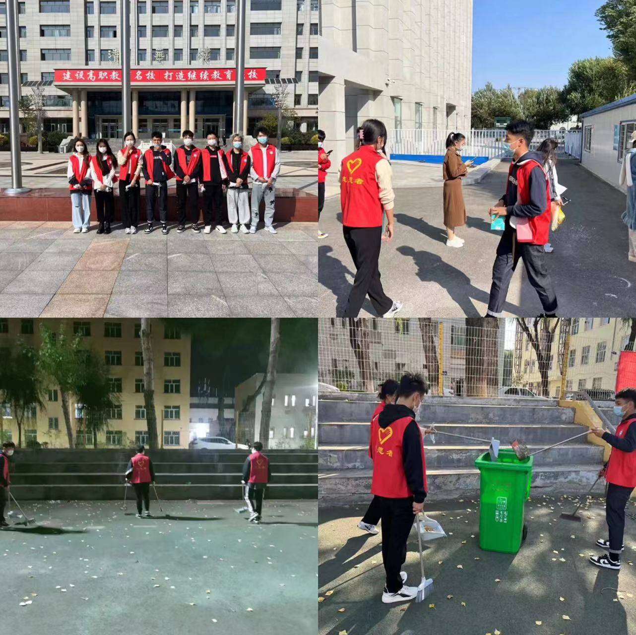 在校团委的统一组织安排下,各二级学院2021级学生会工作人员以学院为单位,组成九个志愿者服务队,统一身着红色“志愿者马甲”,每晚在两校区进行志愿服务工作,包括清扫校园运动场、对教室走廊等公共区域进行消杀、提示未戴口罩的同学戴好口罩、提醒食堂就餐未达到标准间距的同学注意保持距离、核酸检测时帮助医护人员维持秩序,等等。校园处处都有他们的身影,这些身影构成了校园一抹鲜艳的“志愿红”,成为“龙职”抗疫战场上最靓丽的一道风景。