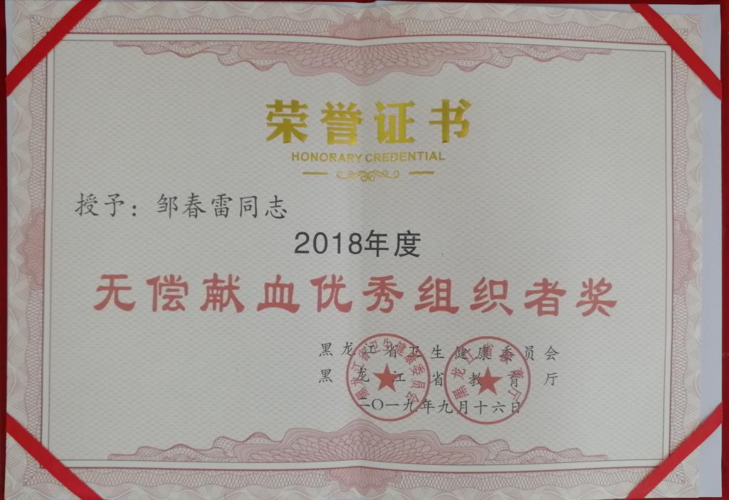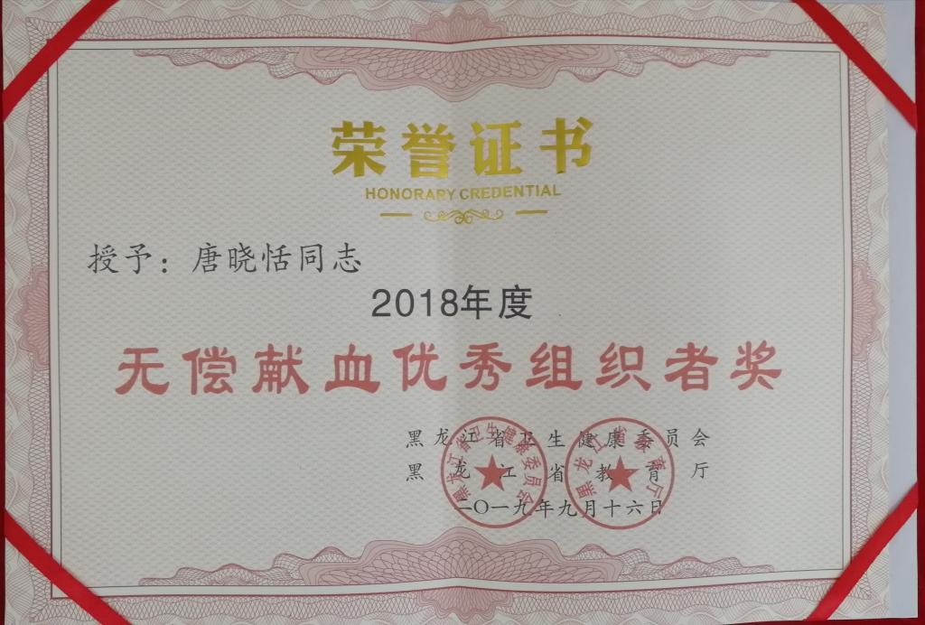 近日,省卫生计生委、省教育厅联合发文,表彰我省中高等学校2018年度无偿献血工作先进单位和个人,beat365荣获“无偿献血先进单位奖”;校团委书记邹春雷、组宣办主任唐晓恬分别荣获“无偿献血优秀组织者奖”。