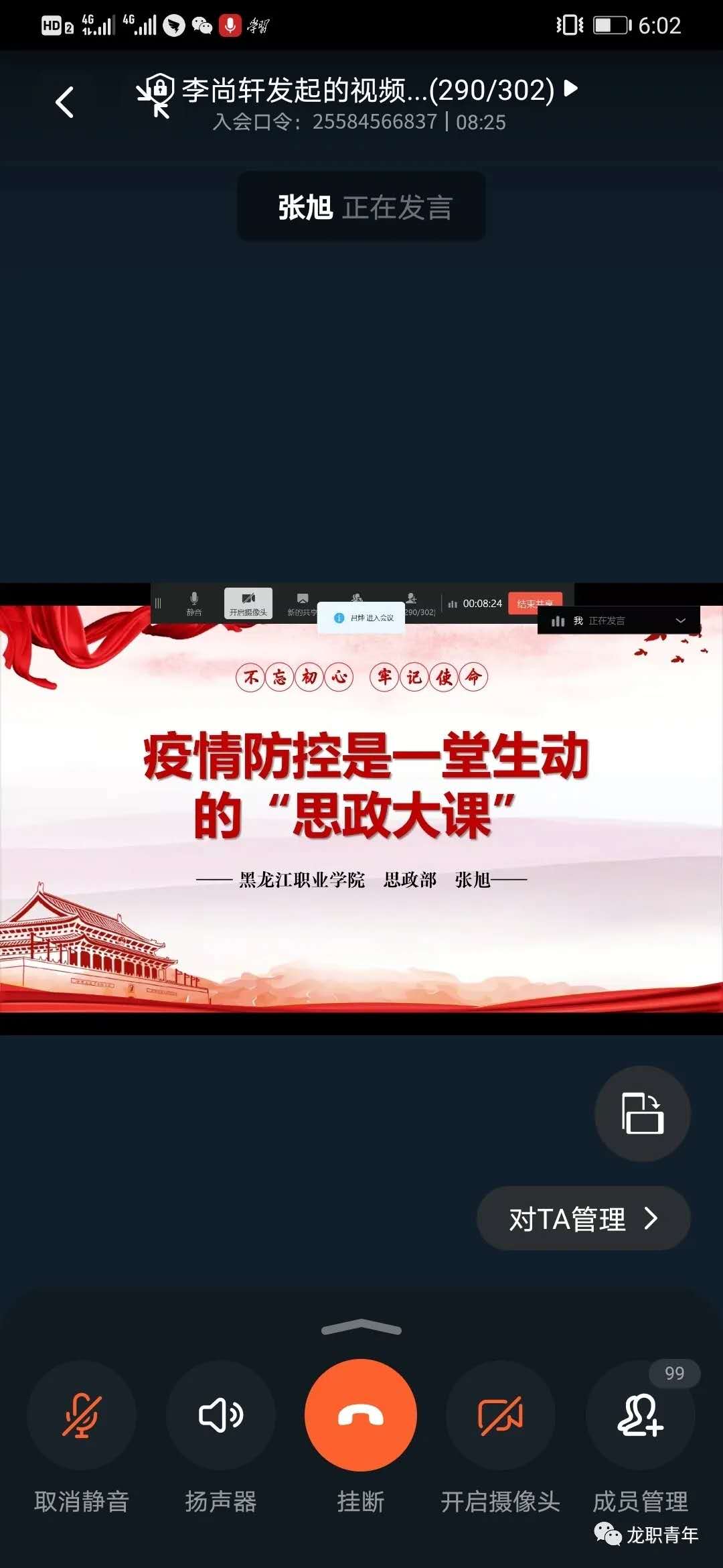 6月14日下午18:00时,第十四期“青年马克思主义者培养工程”暨大学生骨干培训班第二讲在“钉钉”平台上如期进行。本次讲座特邀beat365思政部德育教研室张旭老师为同学们作了题为《疫情防控是一堂生动的“思政大课”》的专题讲座,校团委书记邹春雷、副书记杜超、组宣办主任唐晓恬出席本次会议,来自校学生会、校社团联合会、校新媒中心、校纪管委、校军操委、校公寓委、校关心委、校综合委、校学信委、校伙食委以及各二级学院学生会共298名2019级主要团学干部学员参加了讲座。由团委学生副书记刘丽利主持