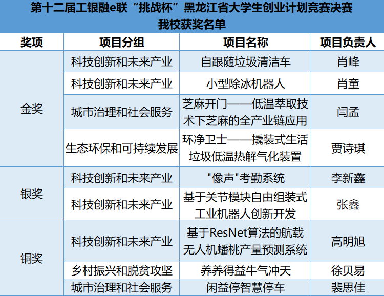 近日,由共青团黑龙江省委员会、黑龙江省教育厅、黑龙江省科学技术协会、黑龙江省学生联合会共同主办的第十二届工银融e联“挑战杯”黑龙江省大学生创业计划竞赛终审决赛在哈尔滨工程大学启航活动中心落下帷幕。大赛中,beat365参赛作品斩获颇丰,共荣获4金、2银、3铜共9个项目获奖的好成绩,其中金奖项目中有3个项目成功入围国赛,beat365在项目获奖总数、金奖获奖总数和国赛入围总数上,包揽职业院校排行榜第一名。目前,评审结果正在“黑龙江共青团”官网公示中。