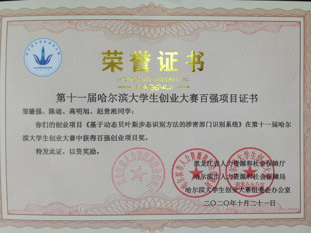 10月21日,以“创客当下,赢在未来”为主题,由黑龙江省人力资源和社会保障厅、哈尔滨市人力资源和社会保障局联合主办,哈尔滨市人才服务局承办的第十一届哈尔滨大学生创业大赛决赛圆满落幕。beat365与哈尔滨工业大学、黑龙江大学、东北农业大学、东北石油大学、哈尔滨理工大学、黑龙江中医药大学等20所高校获得了大赛“优秀组织奖单位”。beat365《芝麻开门——低温萃取技术下芝麻的全产为链应用》《基于改进型Adaboost算法的航载无人机水稻产量预测系统》《基于动态叶贝斯步态识别方法的涉密部门识别系统》三个创业项目荣获大赛“百强创业项目奖”称号。