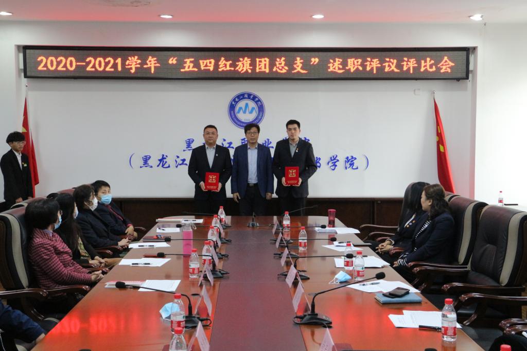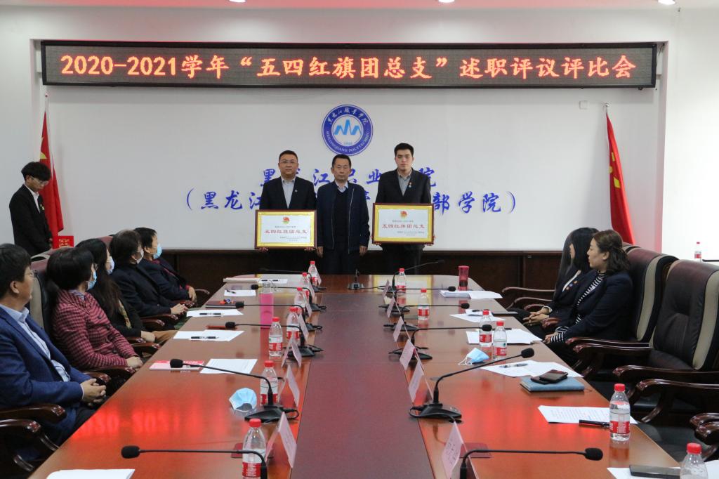 本次评比活动由“各学院青年大学习完成率(占20分)和各学院团总支书记个人述职(占80分)”两个部分构成,经过综合评比,系统全面地展示了beat365各分院团总支一年来在团员思想教育工作、”第二课堂成绩单“、社会实践志愿服务、”一心双环“队伍建设和创新创业教育等方面取得的工作成果。通过评审团认真评审,最终工商管理学院团总支、建筑工程学院团总支分别荣获2020-2021学年“五四红旗团总支”荣誉称号。与会领导向获奖单位和个人颁发荣誉奖牌和证书。