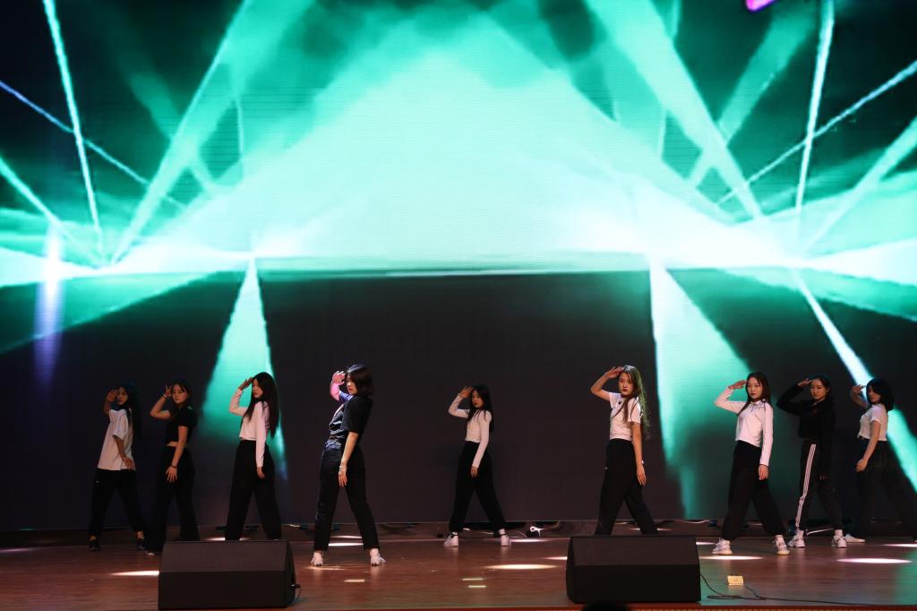 表彰大会过后,与会师生共同观看了2021年社团文化月“铭记党史荣耀·尽显社团风采”主题汇报演出。校大学生艺术团街舞队带来的舞蹈《燃》,拉开了整台演出的帷幕;华夏汉服社团选送的古风舞蹈,以独特的表演形式彰显了龙职学子对中华优秀传统文化的深厚情怀;校大学生公寓管理委员会带来的舞蹈《love me now》燃爆全场,旅游与人文艺术学院空乘专业社团带来的走秀《空中礼仪》,将晚会现场气氛不断推向高潮。