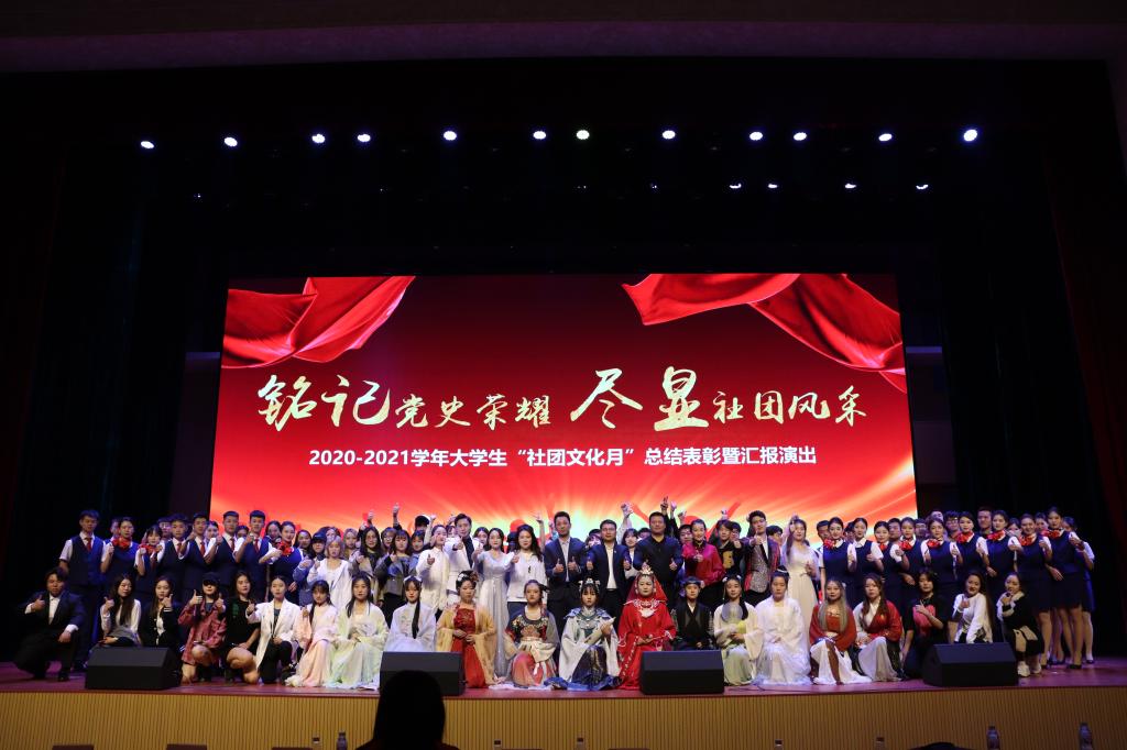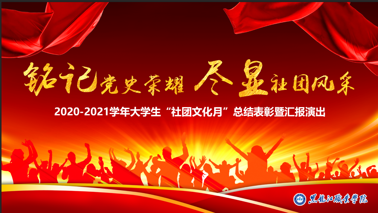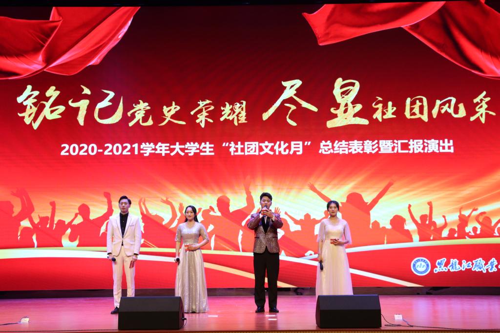 4月29日,beat365中国官网2021年“铭记党史荣耀·尽显社团风采”大学生社团文化月总结表彰暨汇报演出隆重举行。本次活动由校团委主办,校大学生社团联合会承办。校团委书记邹春雷、副书记杜超、组宣办主任唐晓恬、校团委学生副书记刘丽利,社团文化月赞助合作单位哈尔滨品皓教育学校校长孔令业、副校长高学亮出席活动,校院两级各类学生社团会员代表等近800人参加活动。