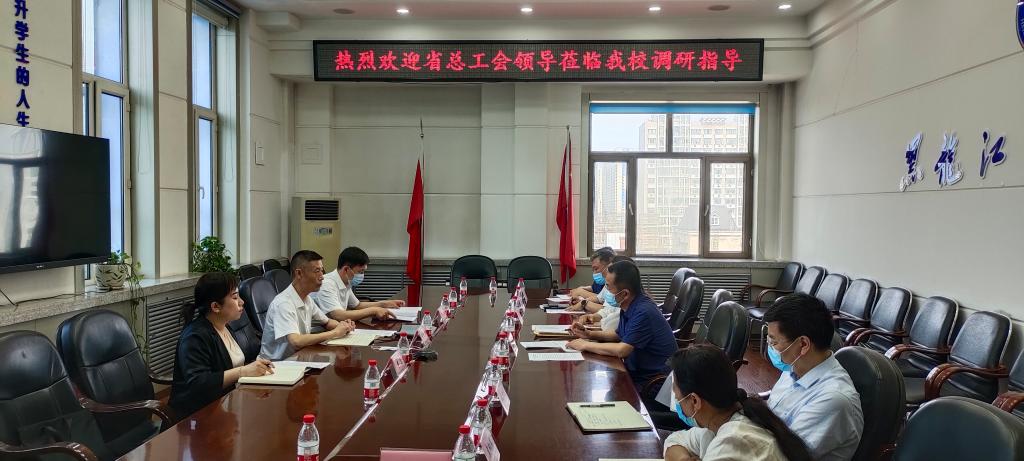 6月21日,黑龙江省总工会一行三人莅临beat365调研指导产业工人队伍建设改革试点单位工作。学校党委副书记、工会主席周家郁,工会、教务处、科研与校企合作处、继续教育学院等相关部门负责人参加会议。