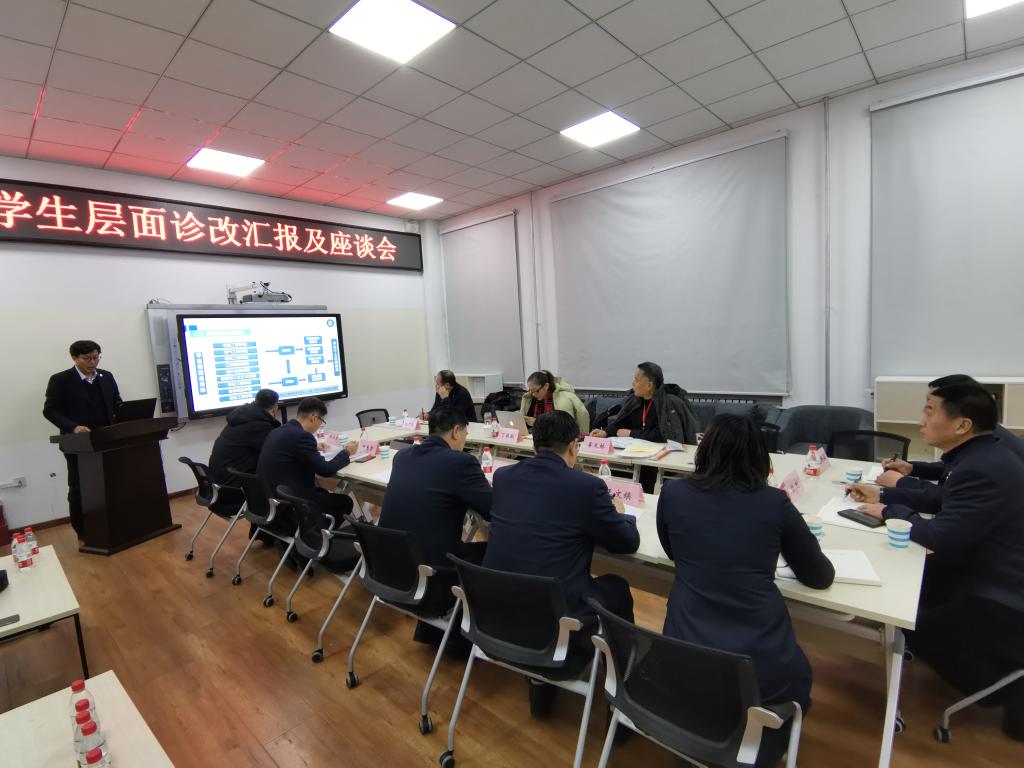 副校长王明海从两链构建、螺旋运行、引擎驱动、平台建设、取得成效五个方面做了学校内部质量保证体系诊改工作汇报。重点汇报了学校、专业、课程、教师、学生5个层面的目标链、标准链打造,监测预警、常态纠偏和阶段改进情况,以及制度机制和文化建设情况。他表示,学校将进一步激发各层面质量主体积极性,完善质量标准,推进智能校园建设,促进各项工作螺旋式改进与提升。