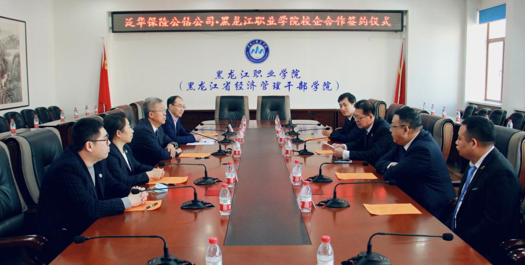 1月7日上午,学校与泛华保险公估股份有限公司在学校党委会议室成功举行校企合作签约仪式。学校校长王利文、副校长王明海、泛华保险公估股份有限公司黑龙江分公司总经理王长明、副总经理类聪出席了签约仪式。
