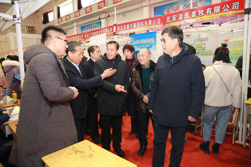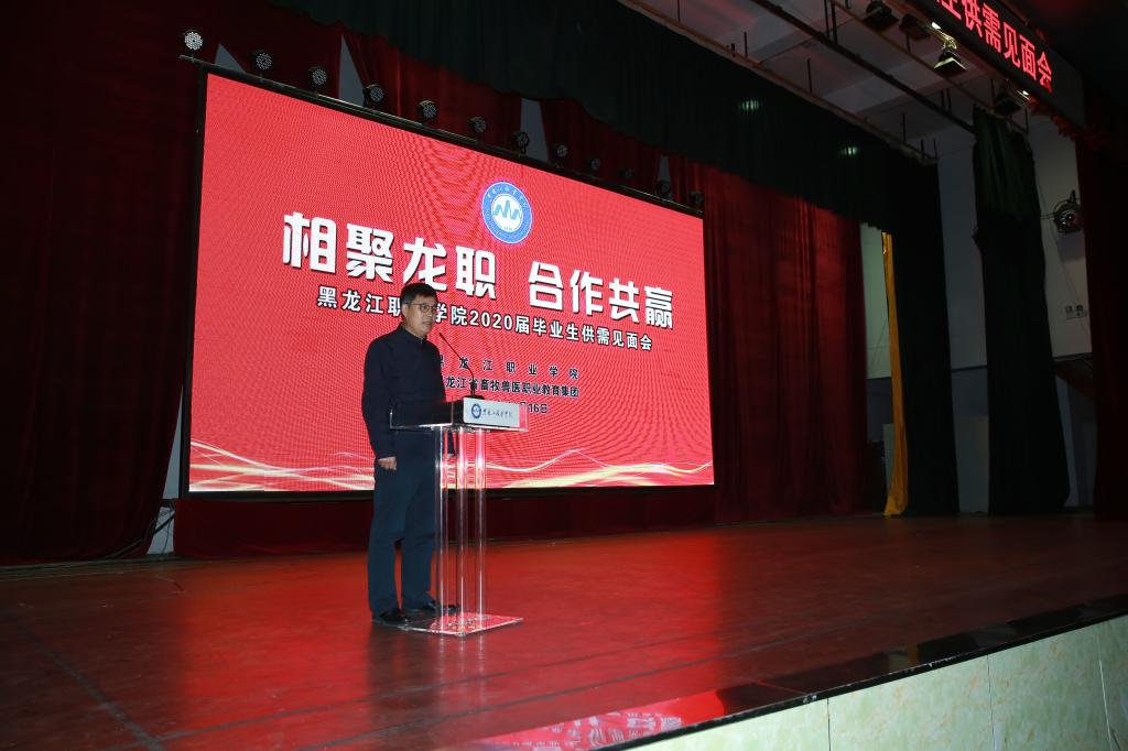 郑福贵在致辞中指出,党的十九大报告明确提出“就业是最大的民生,要坚持就业优先战略和积极就业政策,实现更高质量和更充分就业”。学校党委对就业工作高度重视,始终把就业工作作为重中之重,放在突出位置大力推进。多年来,学校秉承“厚德强技,行知合一”的校训,弘扬“自强有为,兴业报国”的学校精神,践行“学生的铺路石,百姓的圆梦者”价值理念,坚持市场导向开设专业,走具有“龙职”特色的办学之路,教育教学改革、创新创业教育、集团化办学等方面取得了令人瞩目的成绩。祝愿毕业生和用人单位,在双选会上收获成功的喜悦,希望合作企业借助国家振兴发展的东风,不断发展壮大,开启新航程,创造新辉煌,奋进新时代。