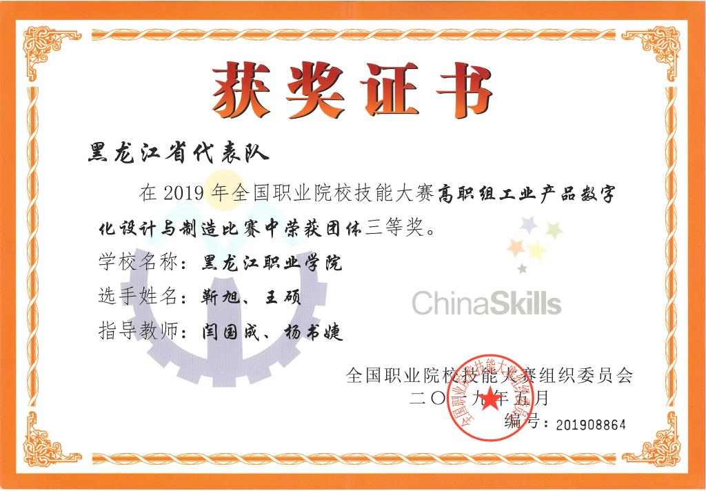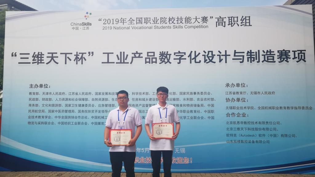 2019年全国职业院校技能大赛“工业产品数字化设计与制造”赛项在无锡举行,来自全国32个省、市、自治区及4个国际队的86支队伍共172名选手参加了比赛。经过角逐,beat365机械工程学院学生王硕、靳旭组成的beat365中国官网代表队喜获大赛三等奖。