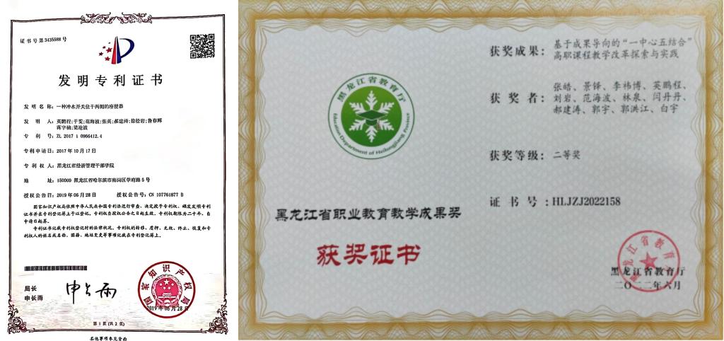 专业获各级各类奖项多项,其中省级课题7项。获省教育厅职业教育教学成果二等奖3项、国家发明专利1项、实用新型专利8项。