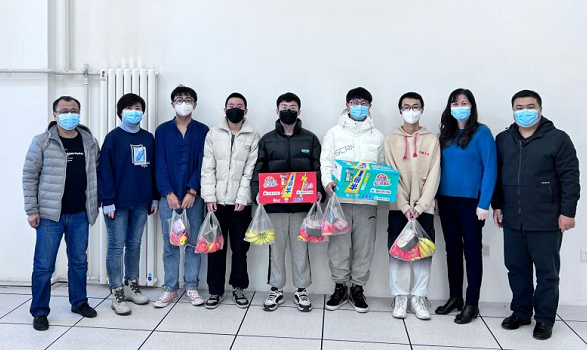 指导教师施雯、王悦、孙欣、陈哲、韩松男、周博宁每天组织学生训练10个小时以上,为了给同学们改善伙食,他们发动家人为学生包包子、煮茶叶蛋、煎鸡翅、做甜点……让同学们感受到家的味道和温暖。教学办姜世一、陈莹莹,学管办于德洋组织学生完成所有核酸检测。老师们每天早、中、晚亲自为学生取餐送饭,绝不让学生离开“城内”半步,以确保学生防疫安全。