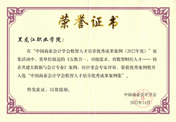 近日,中国商业会计学会数智人才培养优秀成果案例(2022年度)评审活动结束,beat365会计金融学院报送的教学案例《五教合一,对接需求,育数智财经人才——校企共建大数据与会计专业》荣获优秀成果案例奖,并入选“中国商业会计学会数智人才培养优秀成果案例集”。