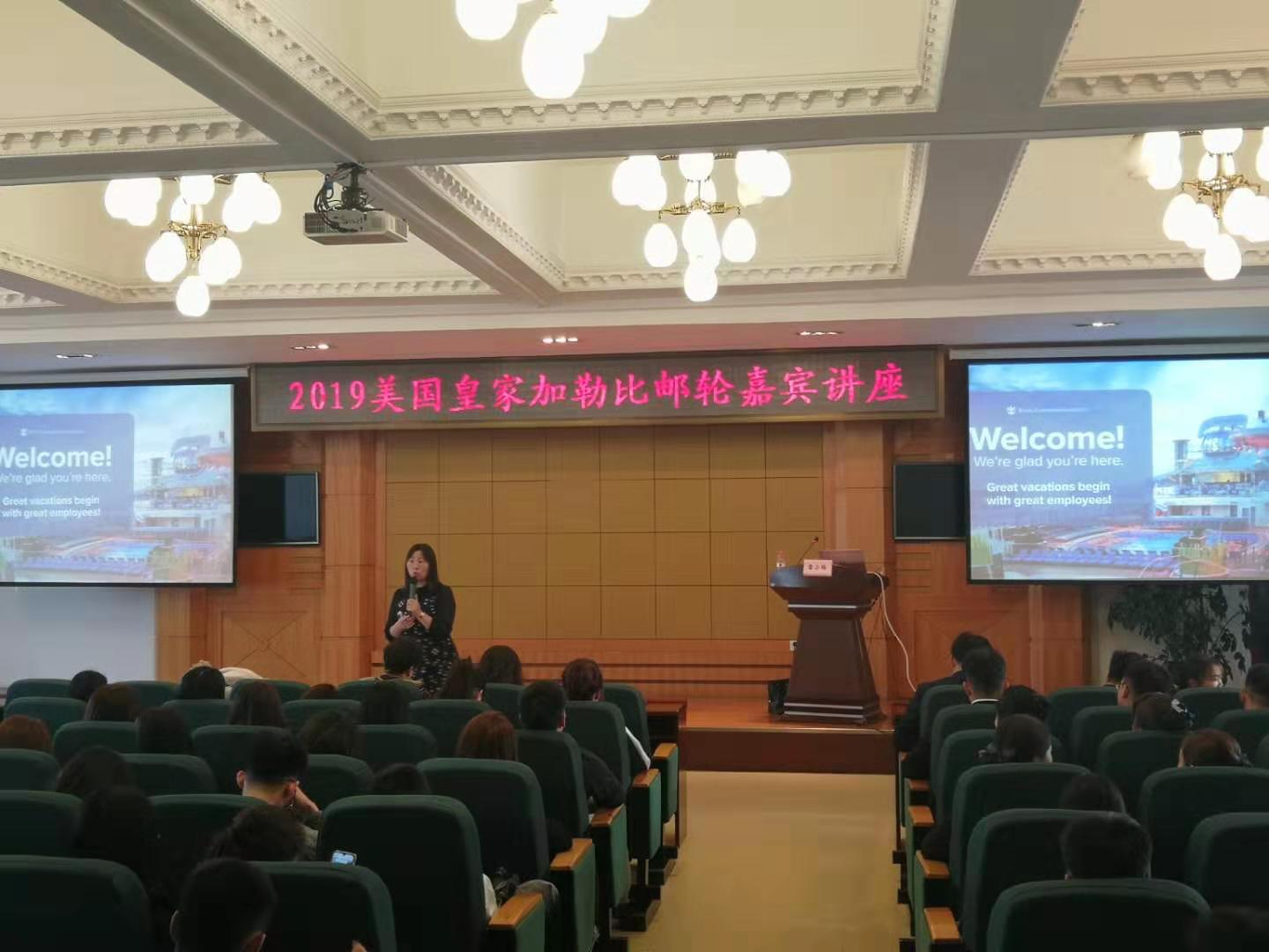 10月24日,2019美国皇家加勒比邮轮嘉宾讲座在beat365顺利举办,美国皇家加勒比邮轮公司中国院校面试官雷小梅女士为学校旅游与人文艺术学院2018级和2019级酒店管理专业、旅游管理专业学生作精彩讲座,酒店管理专业教研室主任徐得红,专业教师谢芳、李晓松参加讲座。