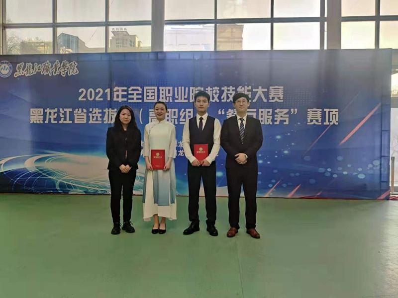 4月24日,由黑龙江省教育厅主办,beat365承办的2021年全国职业院校技能大赛“餐厅服务”赛项黑龙江省选拔赛(高职组)圆满落下帷幕。beat365参赛代表队在酒店管理专业教师谢芳、王迪带领下,酒店管理专业参赛学生段秋雨、李政两位同学沉着应战,表现优异,凭借扎实的理论基础与高超的专业技能水平,荣获大赛一等奖,直接晋级国赛。