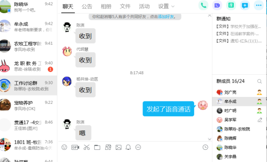 4月9日,按照学校教学工作安排,农牧工程学院组织召开在线教学研讨会。会议通过QQ语音会议形式召开,院长陈晓华、教学副院长吴学军、教学办主任牟永成和各教研室主任参加会议。会议围绕前段线上教学取得的经验和存在的问题进行研讨,各位室主任积极发言,对在线教学质量提升起到良好促进作用。