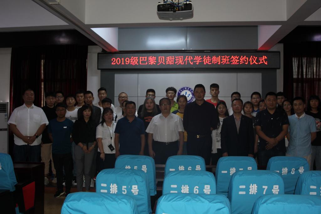 2019级新生入学期间丁原春多次与企业研讨招生招工细节,并亲临新生报到现场,解答学生和家长提出的问题,与企业代表沟通交流,对后续工作开展提出建设性意见和建议。会议期间,王喆代表食品药品学院向2019级新同学的到来的表示祝贺,并向不远千里陪同而来的家长致以问候,王喆代表学院介绍了食品药品学院的总体情况与近年的发展,同时对两家长期合作企业表示感谢,并表示自2016年成立首届巴黎贝甜现代学徒制班以来连续四届成功开班,吉林大药房班已成功举办两届,现今在企业学徒学生大都成长为主任、店长,成为公司的业务骨干,感谢他们在推进校企合作和促进学院学生就业中付出的辛苦与努力,她说学生在公司的发展前景都有目共睹,也表示合作期间校企双方都付出了辛勤的努力,双方也在不断改革创新,为学徒制班深入开展不断探索。企业代表也表示食品药品学院给予了企业大量的支持,企业才能契合与学院现代学徒制合作的发展战略,学生通过在企学徒在毕业前很好地了解企业文化、深入企业实践,为实现零距离就业打下坚实基础。签约仪式随后举行,学生和家长们在大致了解企业和学校情况以后,也纷纷提出关心的问题并进行了咨询,学院参会人员和企业代表也详细回答他们的疑问,同学们都毫不犹豫地在合作协议上签下自己的名字。最后进行了开班仪式,李峰经理和田刚经理分别给2019级食品加工技术、药品经营管理专业现代学徒制班上了开学第一课,通过视频短片、多媒体展示、与学生互动等形式,条理清晰地讲解了学徒制班在校和在企学习方式,用大量实例让学生明白自身如何进行有效学习,实现自身发展。