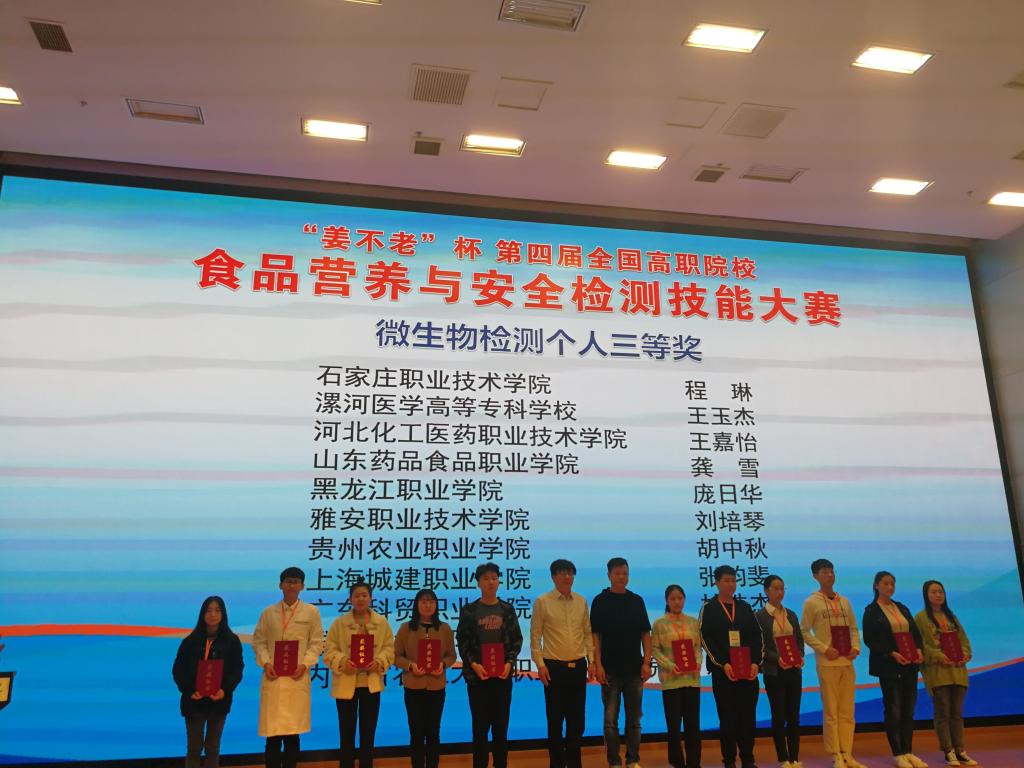11月14——17日,由全国食品工业职业教育教学指导委员会主办的第四届全国食品营养与安全检测高职院校在校生技能大赛落下帷幕,来自23个省,160位参赛选手,83个代表队参赛,beat365食品药品学院教师陶玉霞、马艳梅指导的学生李玉杰、庞日华分别在营养素检测赛项和微生物检测赛项中获得一等奖和三等奖,beat365综合分数喜获团体总成绩一等奖。