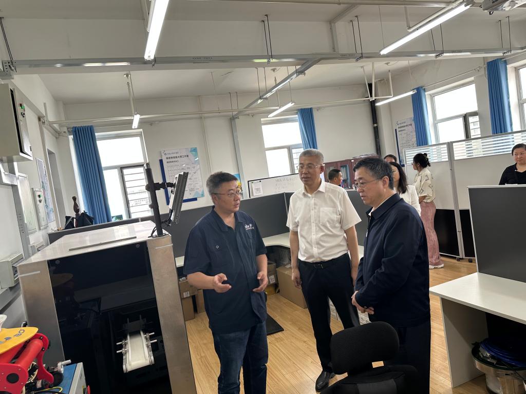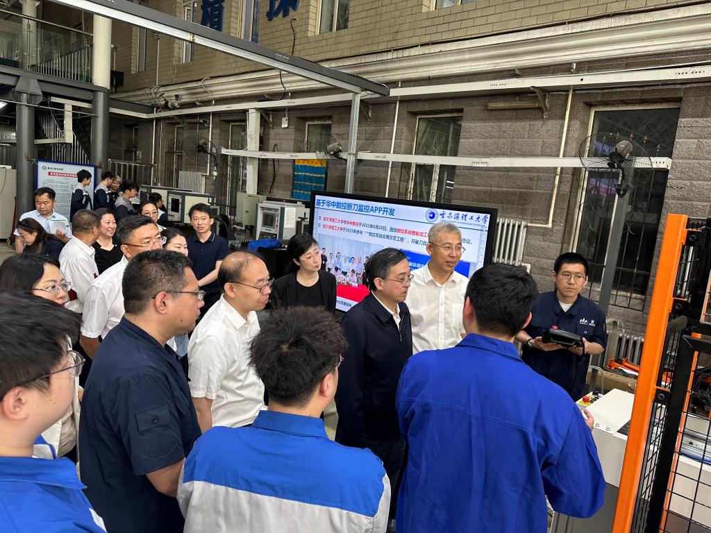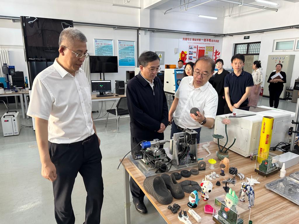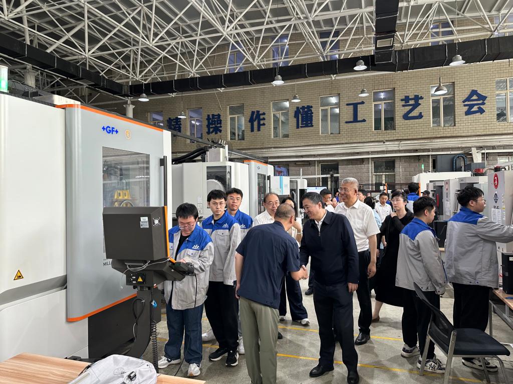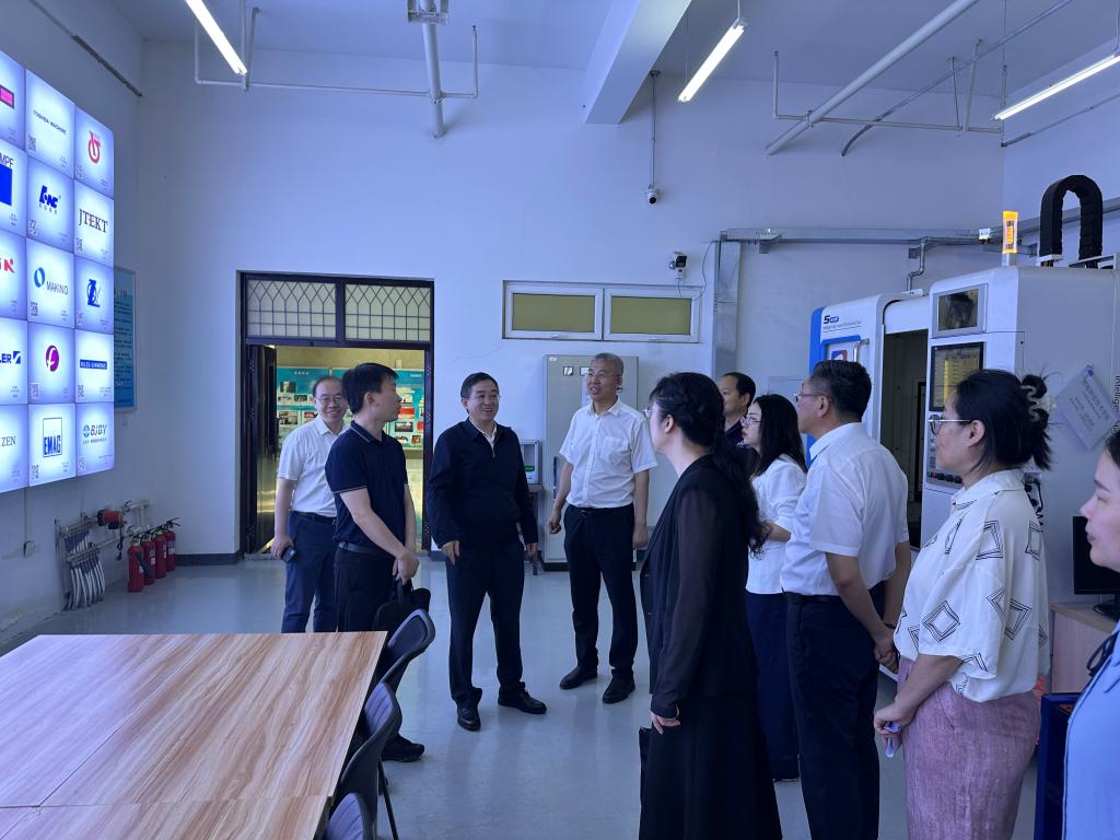 栾志成一行深入工业中心、工业机器人生产性实训基地、国家级虚拟仿真实训中心、增材制造实训室等多个实践教学场所,实地参观考察。调研期间,栾志成与学校国家级、省级技能大师、教学名师等教职工仔细交流,倾听一线教育工作者在数字工匠人才培养中的经验与建议。
