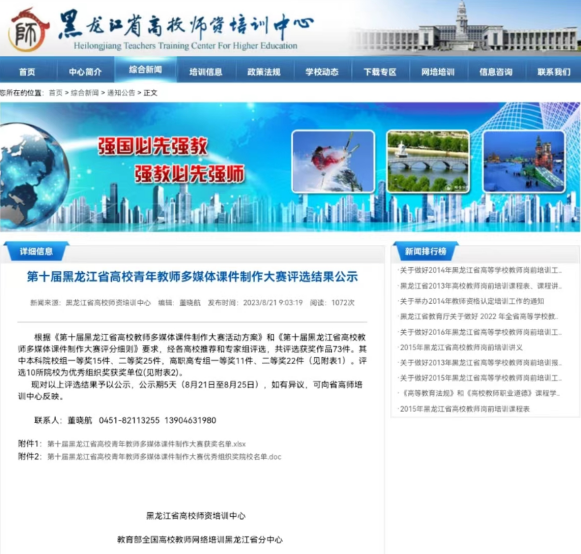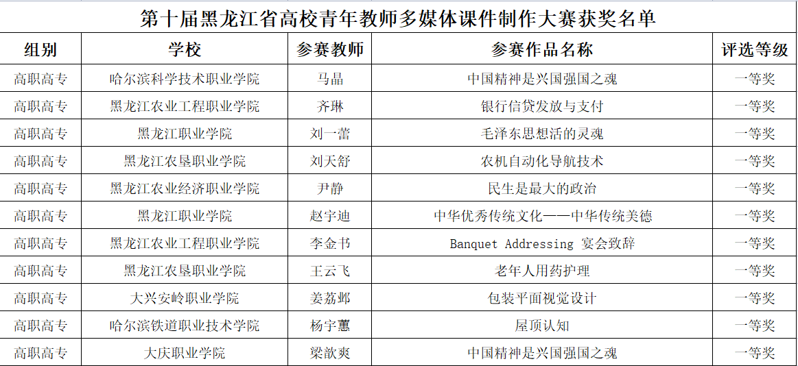 近日,学校通识教育学院在黑龙江省各项教学比赛中捷报频传。数学教研室季霏、臧文琼、鲍婕、任悦四位教师组成的团队在“黑龙江省职业学校技能大赛教师教学能力比赛”中荣获公共基础课程组一等奖;教学办主任赵宇迪在“第十届黑龙江省高校青年教师多媒体课件制作大赛”中荣获一等奖;信息技术基础教研室教师吴枰在“第十届黑龙江省高校微课教学比赛”中荣获二等奖。