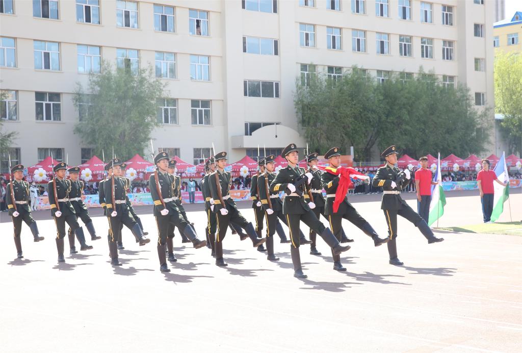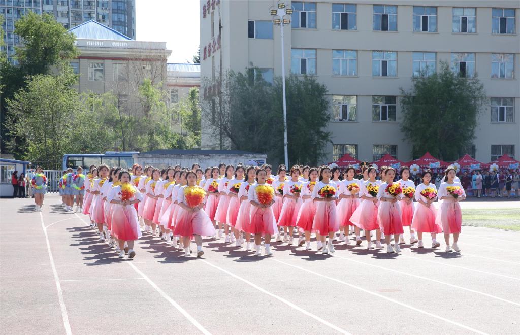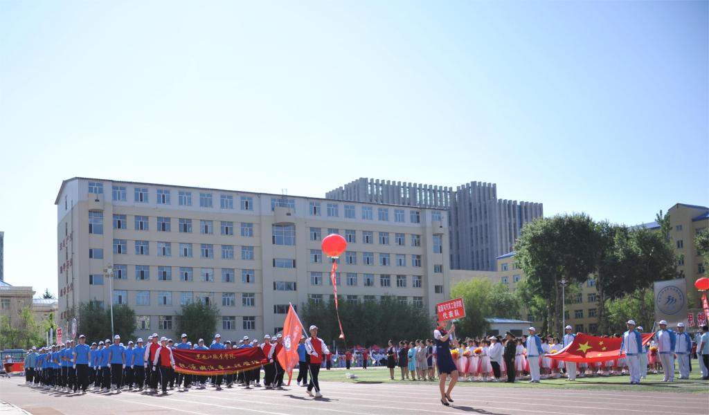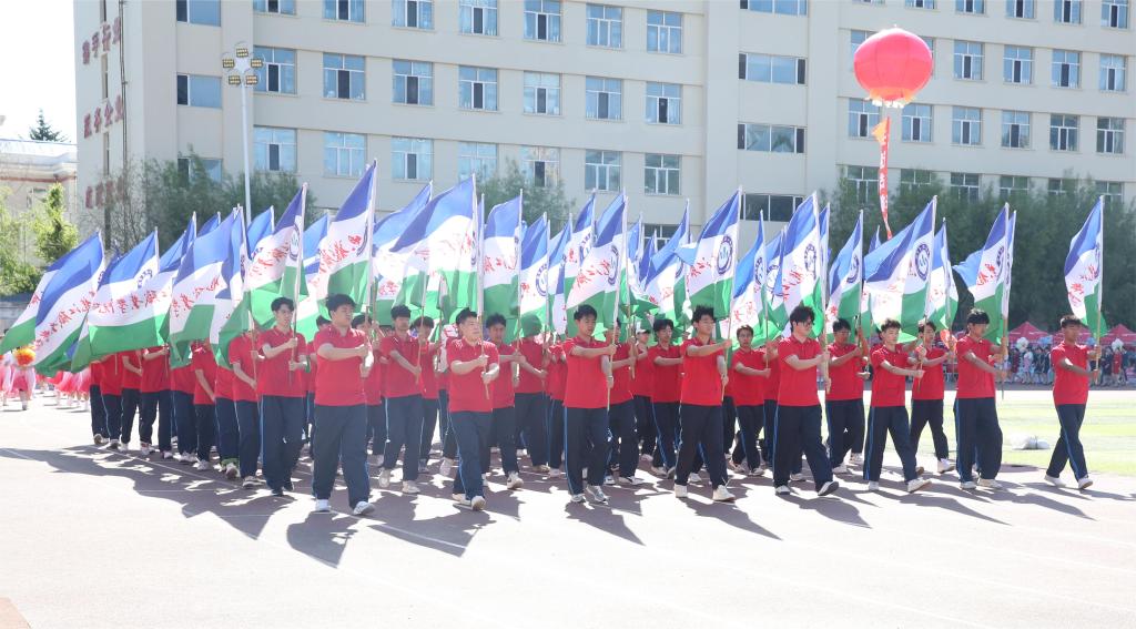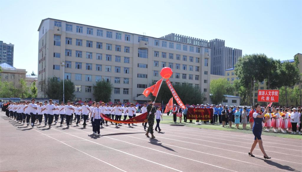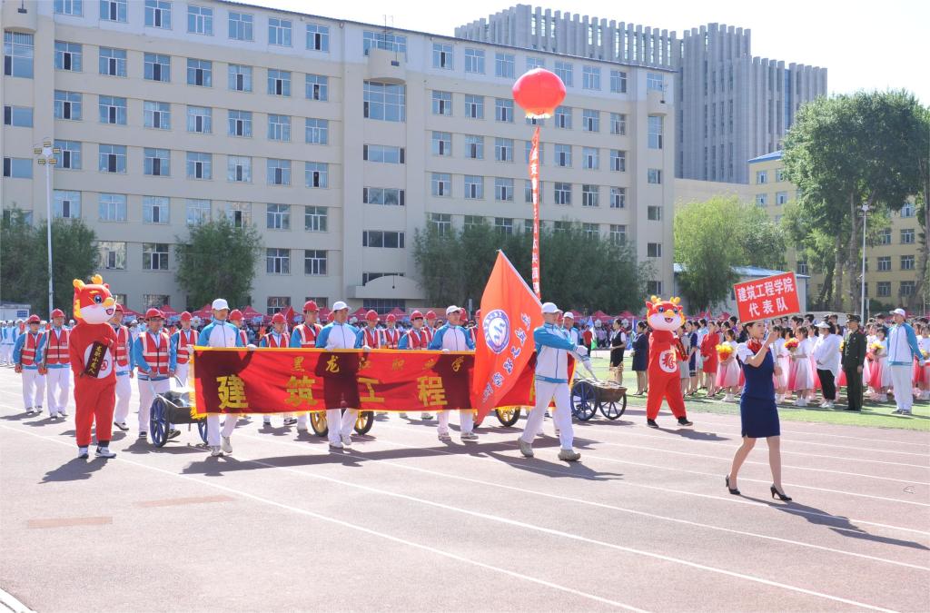 伴随着嘹亮激昂的乐曲,国旗护卫队、会徽队、标语队、刀旗队、花束队、花环队、礼仪队和九支代表队迈着矫健的步伐入场,接受大会检阅。各方队身着统一服装,喊着嘹亮的口号经过主席台,充分展示了“龙职”师生积极向上的精神风貌,赢得在场师生的阵阵喝彩。