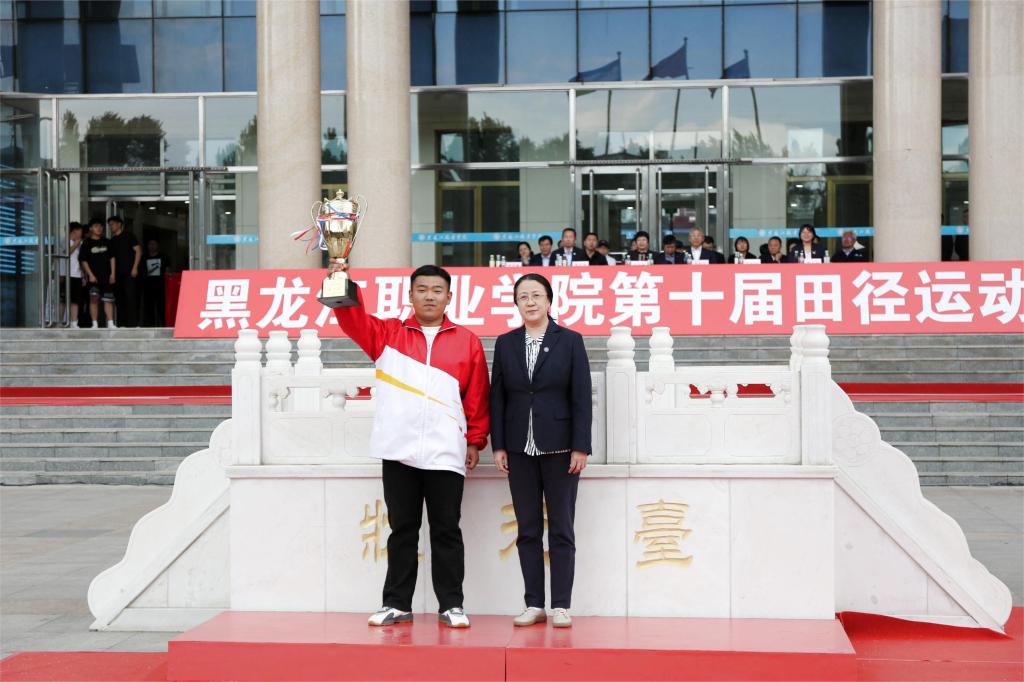 ▲党委委员、副校长吴艳秋为团体总分第一名颁奖