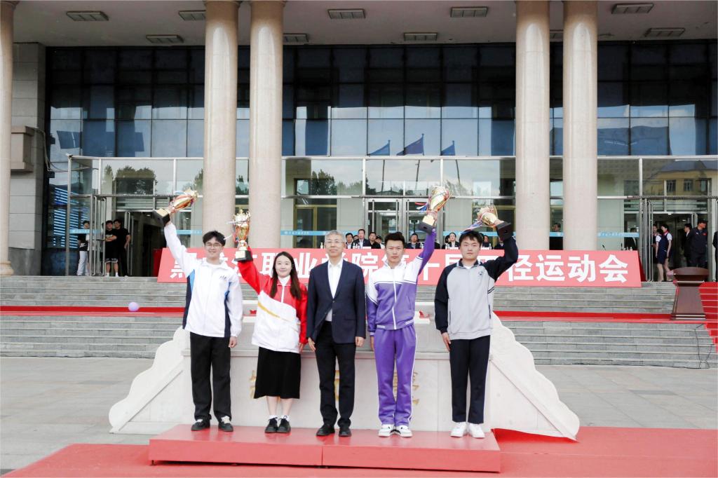 经过激烈的角逐,数字商贸学院、建筑工程学院和智能制造技术学院分别荣获学生组团体总分第一名、第二名、第三名;旅游人文学院、会计金融学院、数字商贸学院和智能制造技术学院荣获精神文明奖;能源与汽车工程学院和建筑工程学院荣获体育道德风尚奖;数字商贸学院和智能制造技术学院荣获大会特别组织奖。学校领导分别为获奖代表队颁发奖杯。