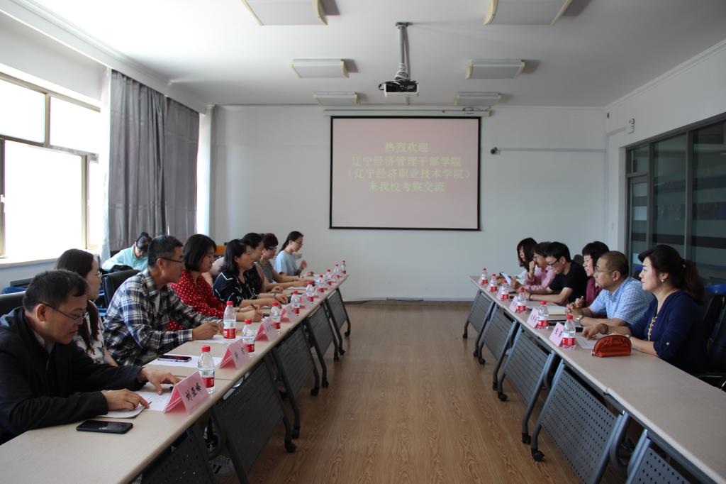 6月21日,辽宁经济管理干部学院通识教学部党总支书记杨敏一行九人到beat365考察交流,通识教育学院党总支书记孔繁海、院长彭秋艳带领中文和外语教研室主任等人陪同参观了学校计算机实训室并组织召开双方见面会。