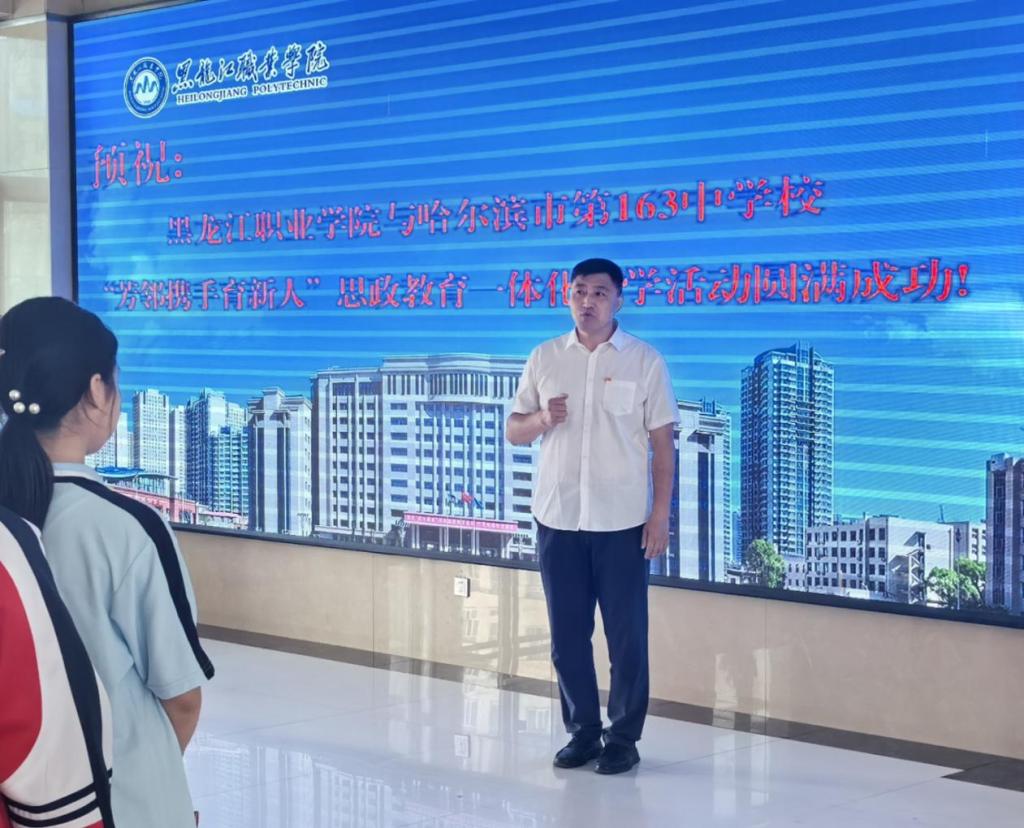 beat365中国官网党委委员、副校长何志鹏出席活动并致辞。他对哈尔滨163中学同学的到来表示欢迎,向同学们介绍了beat365中国官网突显工、农、商的办学特色,以及“打造支撑振兴的龙头高职”的使命任务,回顾了学校的光辉历史和立足龙江“五色”的发展现状。科学技术关乎国家未来,关乎人才培养方向,同学们要开眼界,长见识,早日成为国家栋梁之才。希望通过两校“合作”发挥“合力”,实现多元化的学习体验,促进理论与实践相结合,推动思想政治教育创新发展,培养新时代青少年的爱国情怀和责任意识。