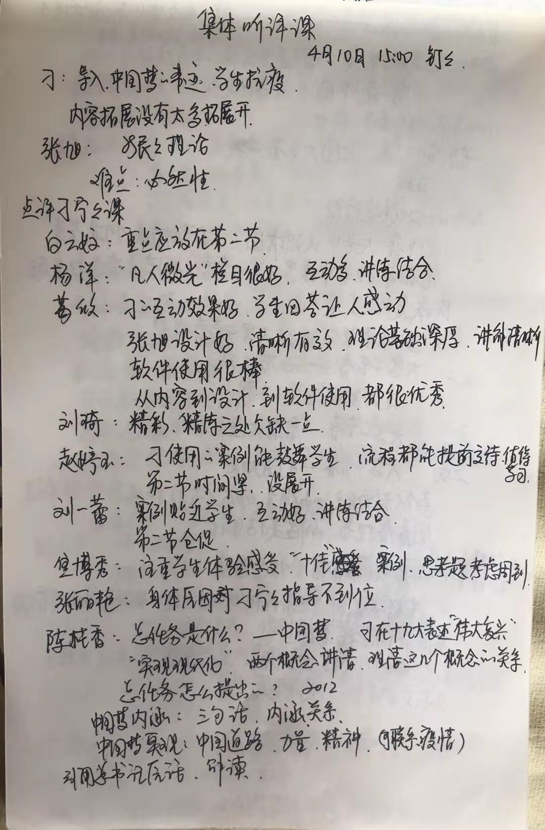 疫情是一次危机,也是一场大考。教师停课不停教,考的是觉悟与初心,考的是能力与水平。为了保证线上教学质量,提升有校难返的学生的获得感,思想政治教研部以案说教,以“六高”态势,以示范教学为切入点,开展集体备课、集体听评课,全面提升教师课堂教学能力水平,收到了良好效果。