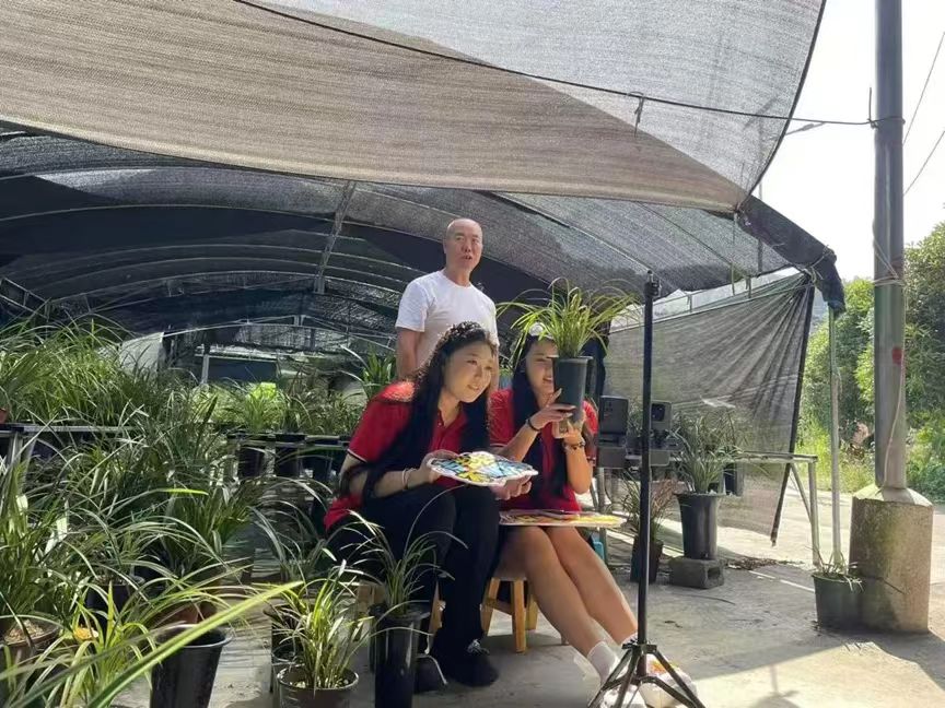 高谷镇兰草基地,实践团搭“双语直播间”,助力兰草销售。成员们用普通话翻译农户苗语,设计养护民谣,绕口令进行互动,两小时点赞破7万,售兰草2100元,实践团与农户约定“十月云端再聚”。