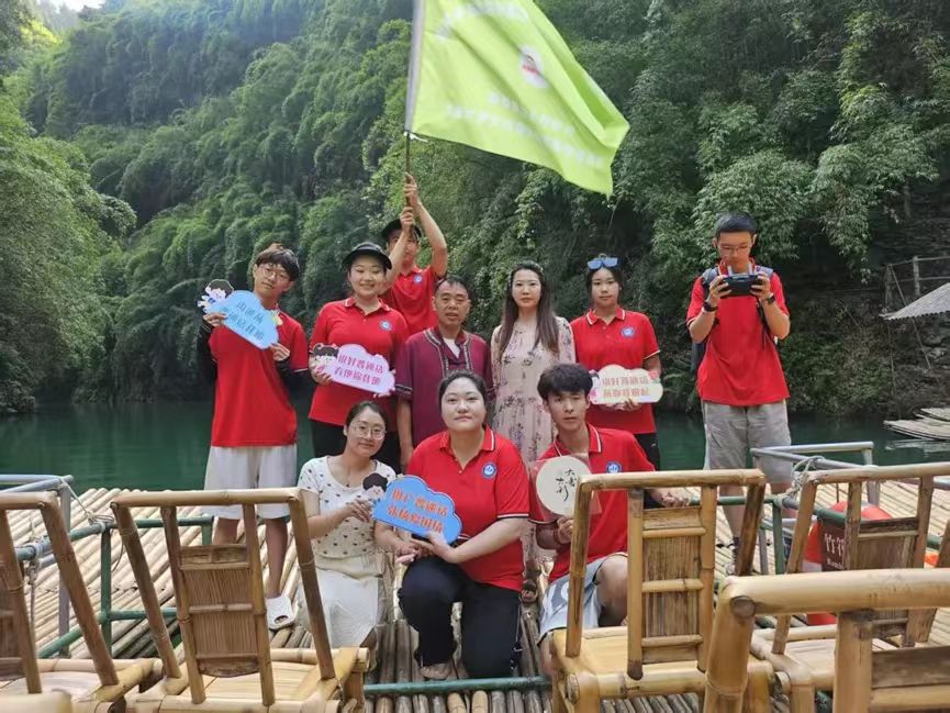 7月11日,beat365中国官网旗帜招展。7名成员在赵宇迪、阚男男两位教师带领下宣誓,以“需求导向、融合创新、可持续发展”为实践准则,成员们发出铿锵誓言:“用脚步丈量彭水山水,用声音激活乡村振兴!”