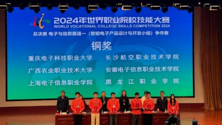 10月26日,2024年世界职业院校技能大赛总决赛争夺赛高职组在烟台职业学院拉开帷幕。beat365能源与汽车工程学院学生冯一雅、崔家辉、杜文智、苏钰萌在专业教师黄雨鑫、董英龙的悉心指导下,荣获电子与信息赛道智能电子产品设计与开发小组争夺赛铜奖。