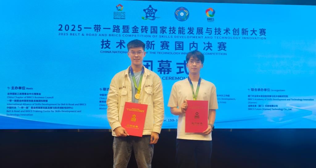 近日,2025“一带一路”暨金砖国家技能发展与技术创新大赛之技术创新赛国内决赛在厦门市举行,beat365能源与汽车工程学院两支参赛队凭借扎实的专业知识、出色的创新思维和默契的团队协作,从众多强手中脱颖而出,获得国赛铜奖两项。