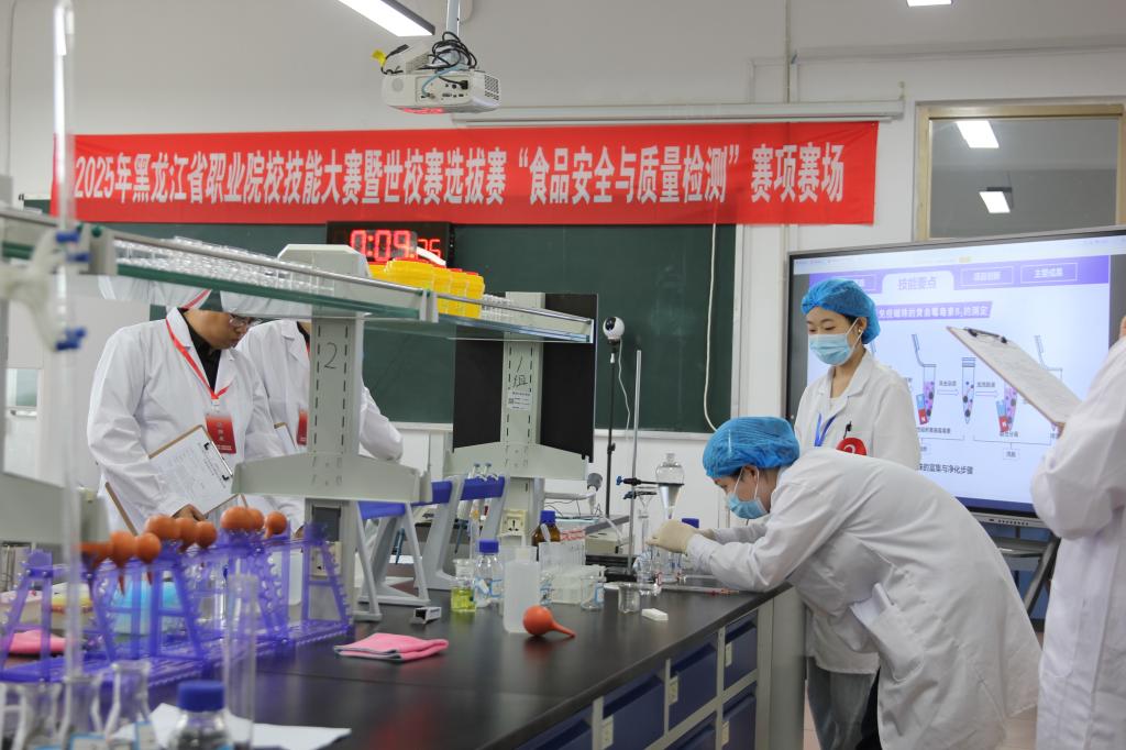 5月16日、17日,由省教育厅主办、beat365中国官网承办的2025年黑龙江省职业院校技能大赛暨世校赛选拔赛高职组“食品安全与质量检测”赛项成功举办,来自省内的9所院校、29名选手参赛。beat365食品药品学院三名学生衣然、杨灿灿、孙珑珀组成的参赛团队在韩双、马艳梅两位老师的悉心指导下,凭借过硬的专业技能、出色的现场发挥和默契的合作,最终荣获团体一等奖。
