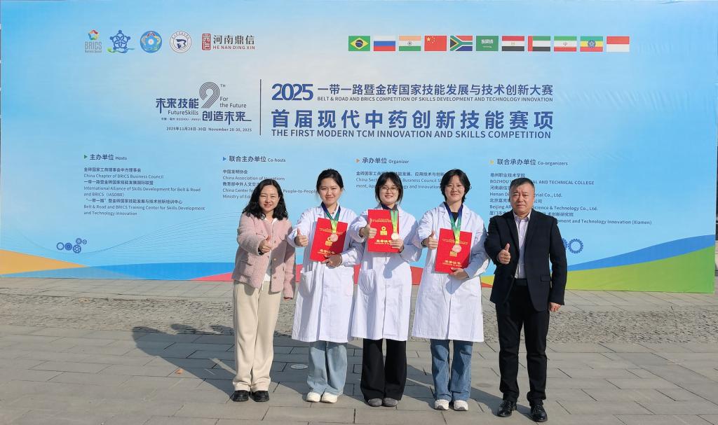 2025“一带一路”暨金砖国家技能发展与技术创新大赛首届现代中药创新技能赛项全国总决赛近日圆满收官。大赛共吸引全国97所院校参赛,beat365食品药品学院代表队凭借出色表现,荣获全国三等奖,成为东北三省唯一晋级决赛并获奖的队伍,充分彰显了学校在中药技能人才培养方面的扎实基础和卓越成效。